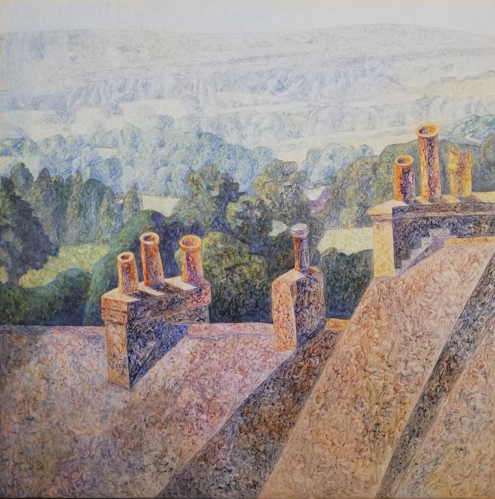 Printmaker Paul Rickard’s long-held interest in archaeology also leads him to be particularly drawn to a human connection in the landscape. He feels that “there is often a degree of tension between these structures, their original function, their modern setting and society’s changing cultural attitudes towards them”. Paul is exhibiting a fresh collection of prints some of which are a result of his participation in a collaborative exhibition to celebrate the 50th anniversary of the South Wales Miner’s Library.