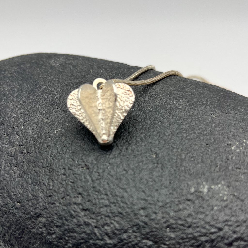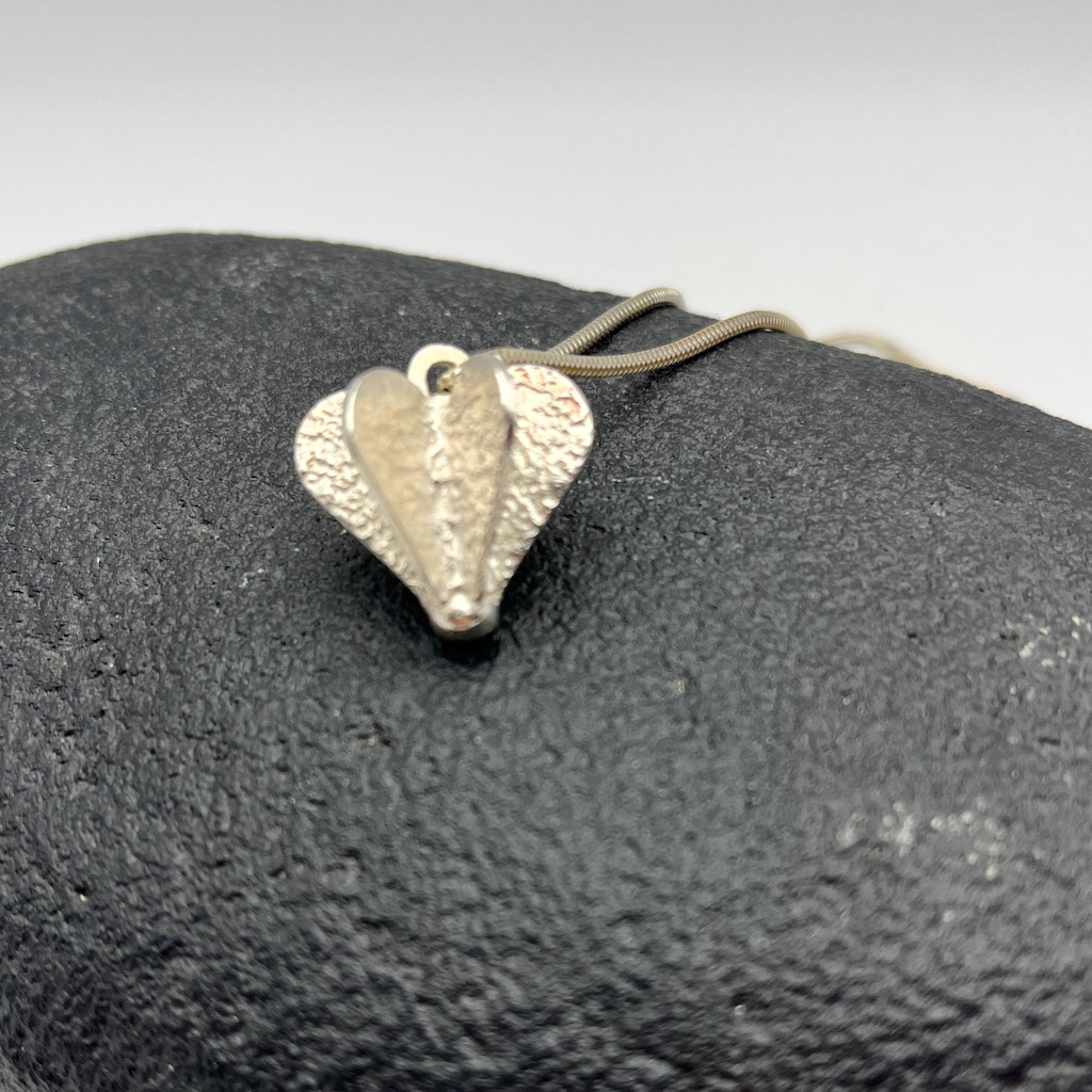 Handmade silver pendant by Rosemary Cochrane with a pendant measuring 2.1 x 2.5cm on a 24cm silver chain.