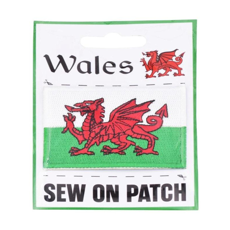Sew on patch with a Welsh flag design perfect for any item of clothing. The patch measures 4.5 x 7cm.